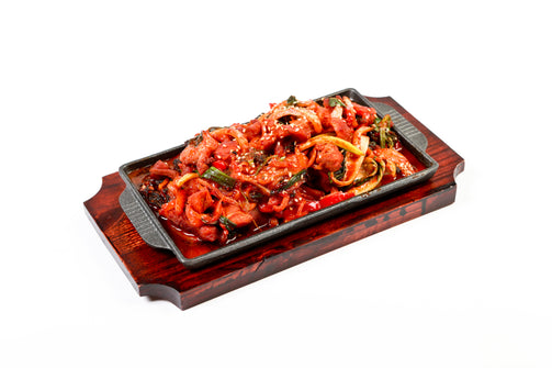 Stir-fried chicken thighs marinated in spicy gochujang sauce